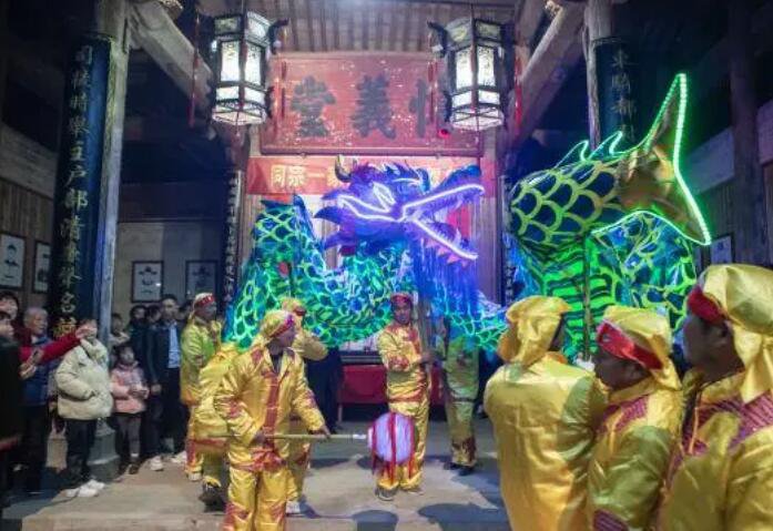 神威的锣鼓敲起来,较劲的龙灯舞起来。正月初六,祁门县历口镇光芒村热闹非凡,村民自发举行传统的舞龙灯活动,一起庆祝龙年新年。![]() 在历口镇光芒村祠堂中,当地的龙灯扮演队员身着色彩鲜艳的扮演服装,随着鼓乐的响起,队员们一个接着一个,举着龙灯跟着龙头前面的龙珠奔驰,龙身时而上下翻腾、左右盘旋,时而倒地平舞、弯曲周游,队员们协作默契,有节奏地摆动着龙灯,引得前来观赏的村民们发出阵阵喝彩。 ![]() 村民冯卫军高兴的说:“本年是龙年,我们历口镇自古以来有舞龙的优良传统,本年适逢这个中井队龙灯再次舞起来,让我们这个龙年气氛愈加浓烈了,也让我们在外面游子愈加有浓浓的归属感。” 据了解,过年舞龙灯是祁门农村过新年的传统习俗,目的是为了祈求来年风调雨顺、五谷丰登、和谐安全,生活越过越兴旺。现在改进后的龙灯选用布衣扎灯、LED取光,晚上舞灯时既安全、简便,也更具观赏性,一同扮演时需求30余名队员一起协作结束。 |