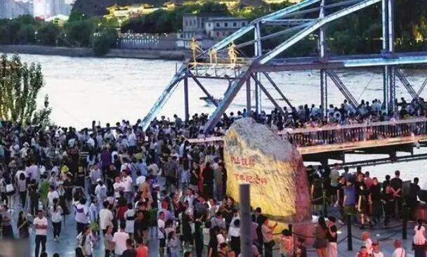 行站在中山橋上 哪裏的口音都有蘭州是黃河僅有穿城而過的省會城市,來蘭州的遊客基本都會去轉一轉黃河風情線,到中山橋打卡。跟著暑期旅行旺季的到來,中山橋每日招待數萬遊客,敞開了摩肩接踵形式。