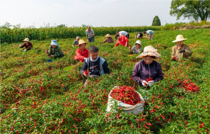“現在壹天請10余名工人,都是周邊的鄉民,他們每個人均勻壹天都能有100多塊錢的收入。”尹熊飛介紹說,今年栽培的辣椒可採摘到9月份,現在已經是採摘第3批辣椒,預計總收入能夠到達20萬元。